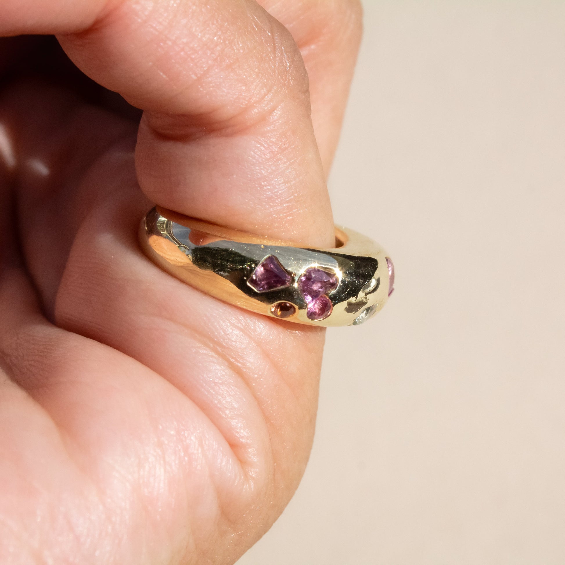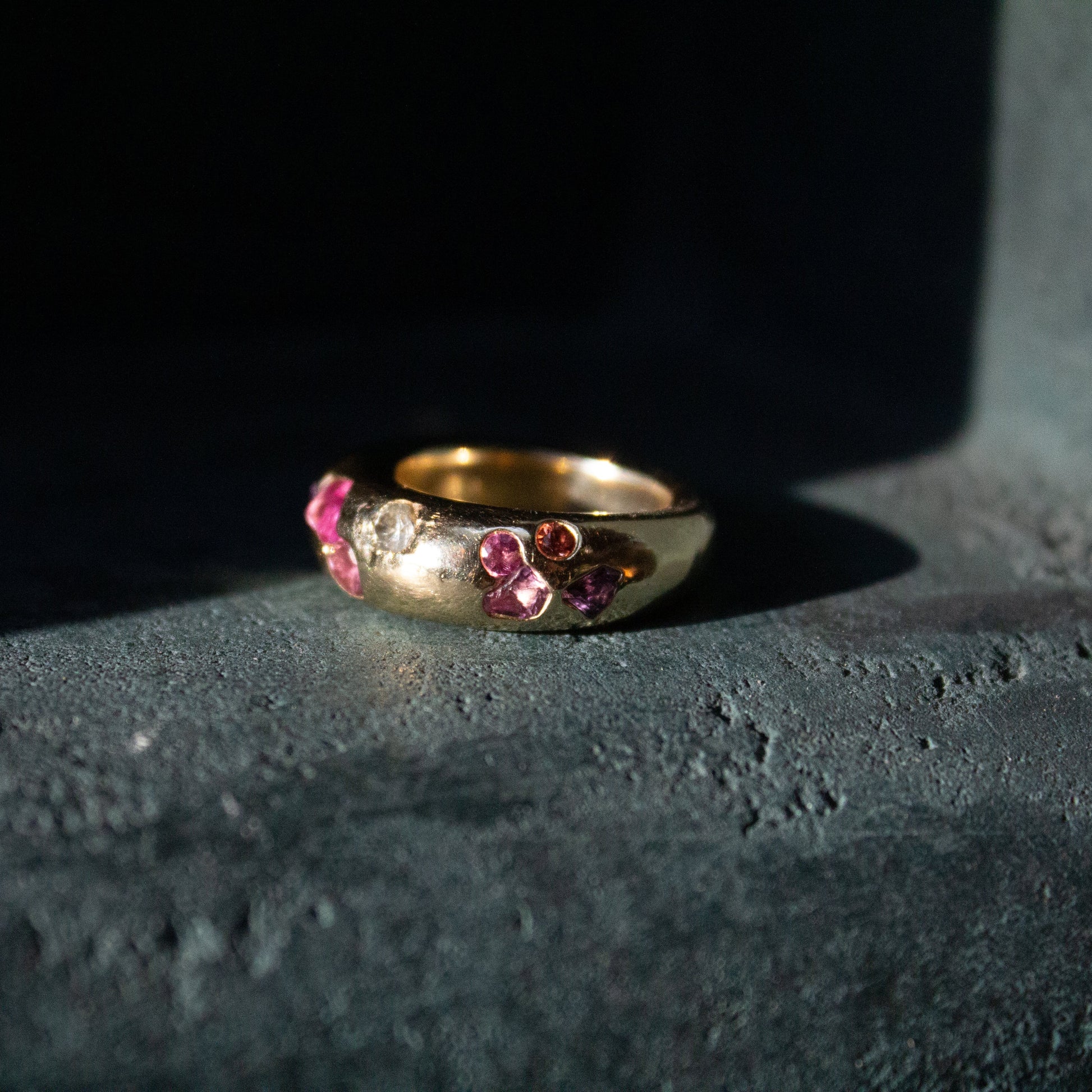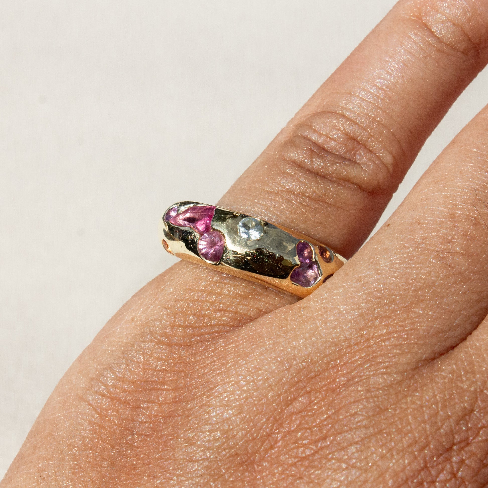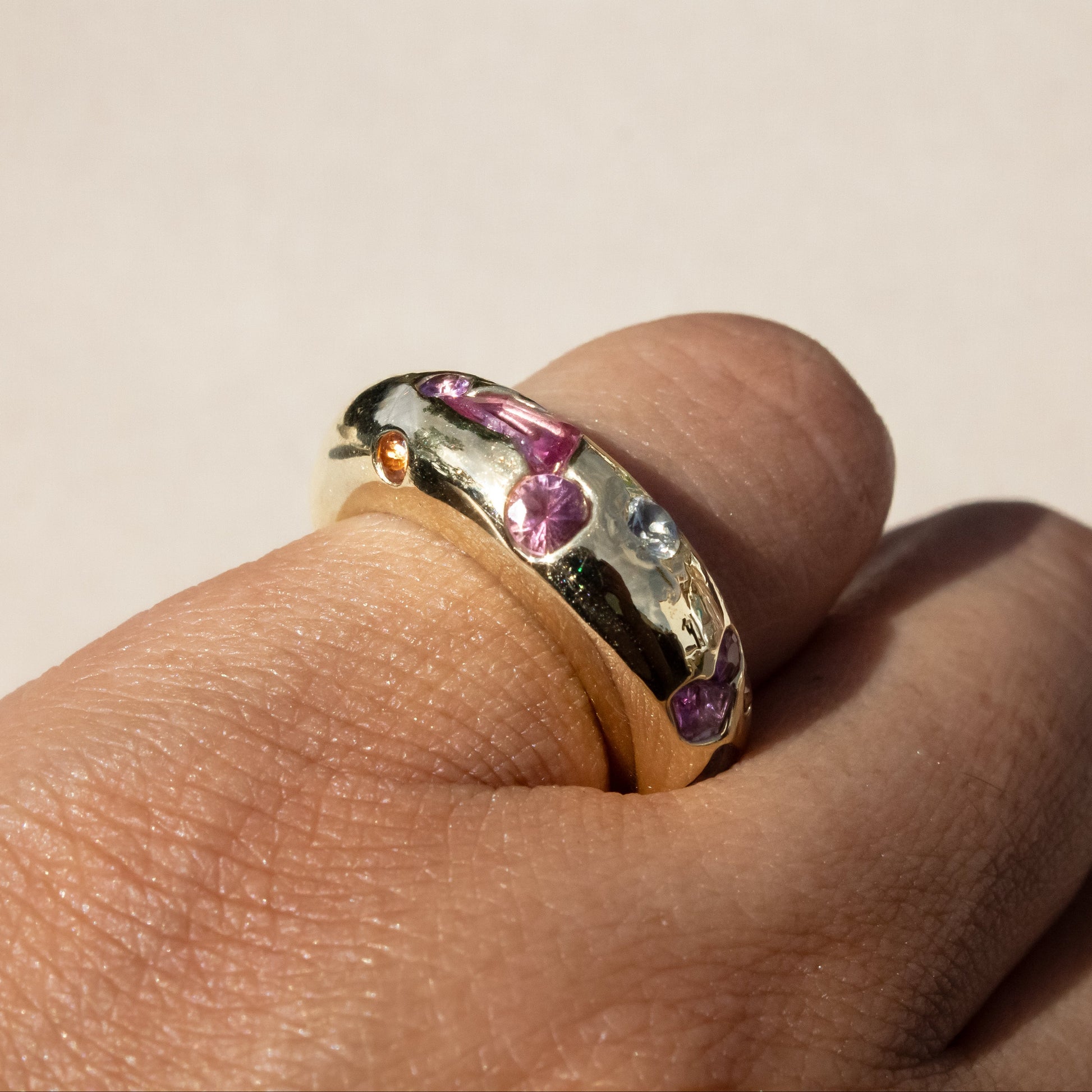 Sculptural, grounded, and quietly playful. The Confetti Jetty Ring is an evolution of The Stax Jetty Ring. From its classic form, we updated it with sapphires in mixed colors and shapes—intuitively set, like light catching at different angles.