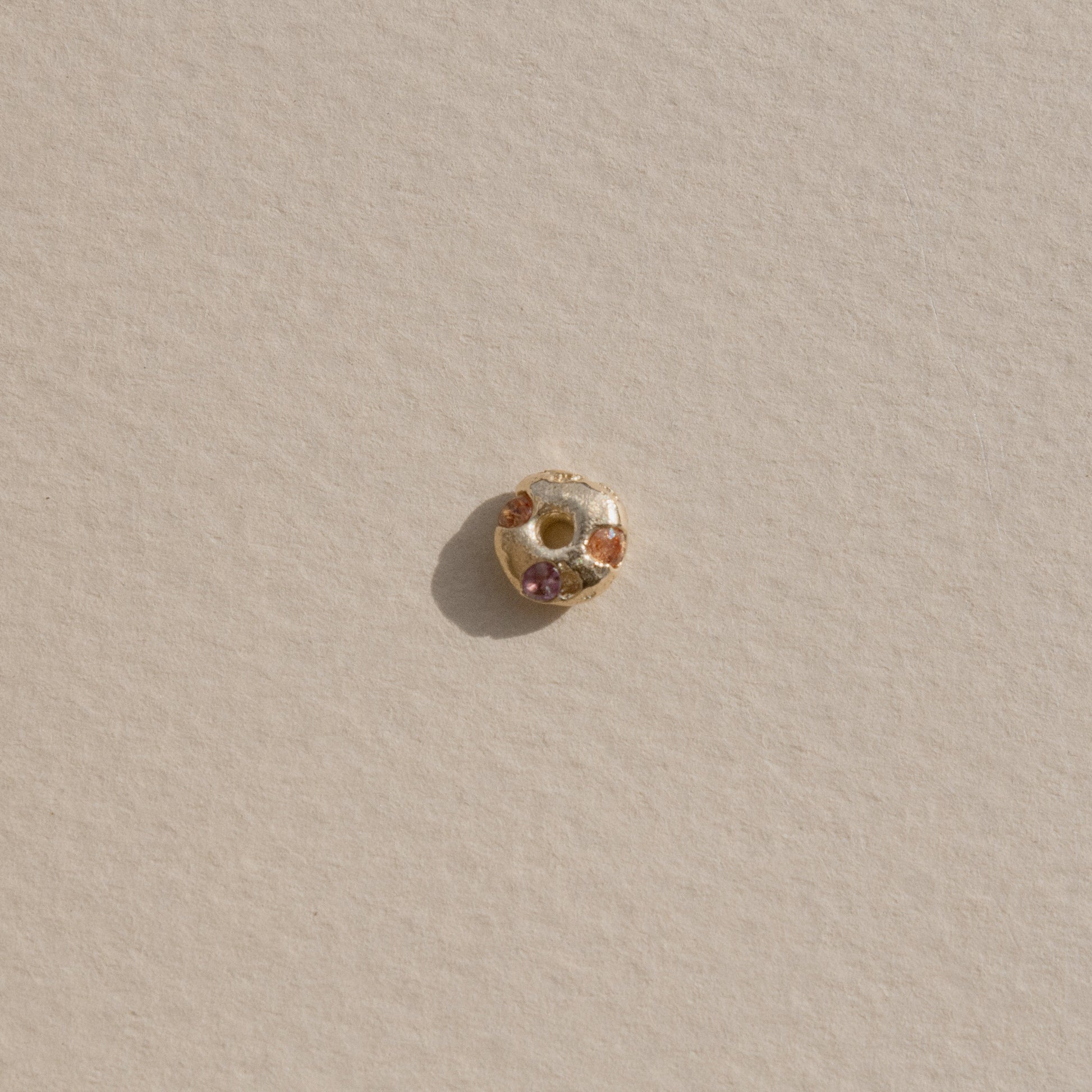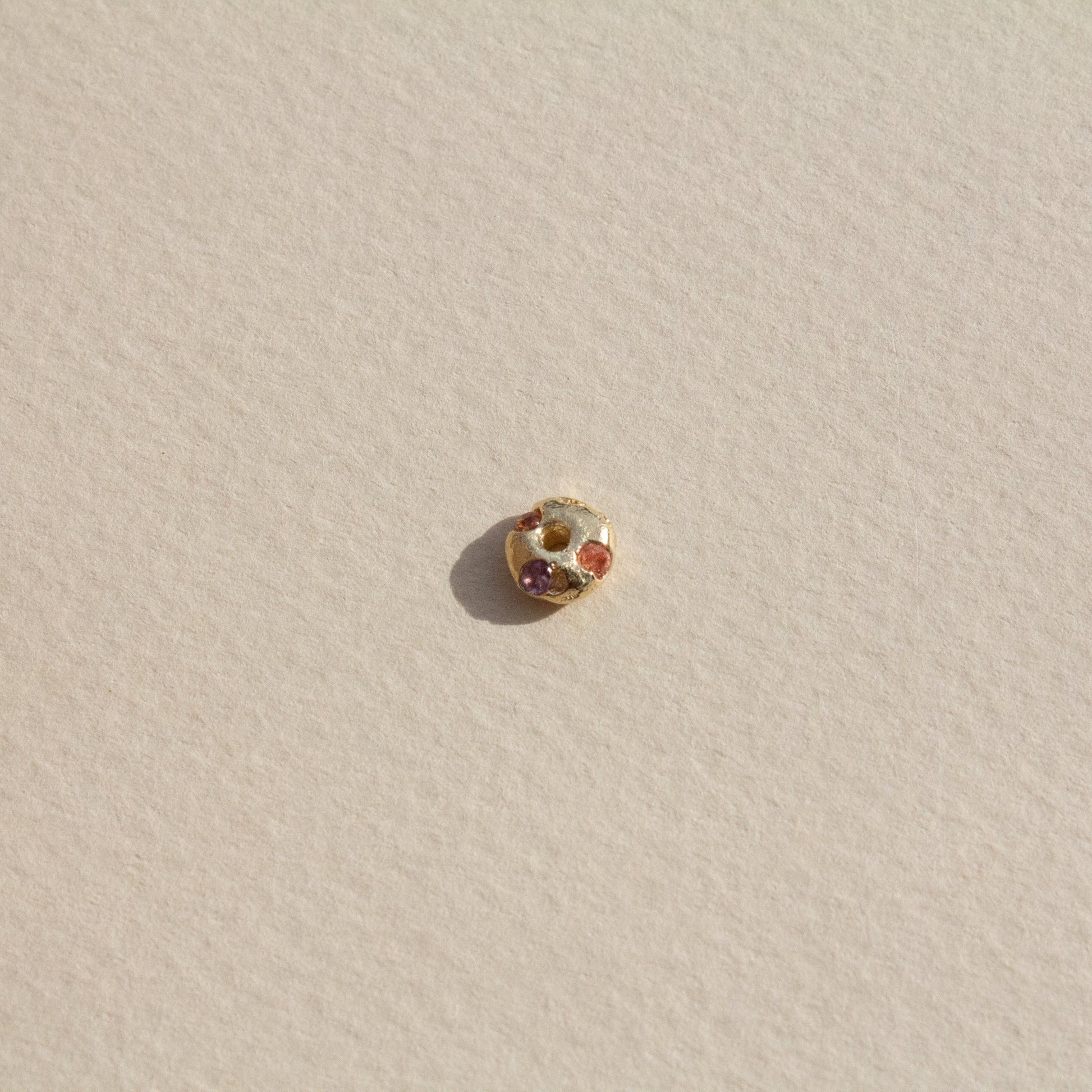 The Confetti Wafer is softly imperfect with scattered colorful sapphires. Designed to layer, collect, and make your own, the Confetti Wafer adds a pop of color and an effortless, lived-in charm to any beaded adornment. Think everyday magic—small, joyful, and never trying too hard.