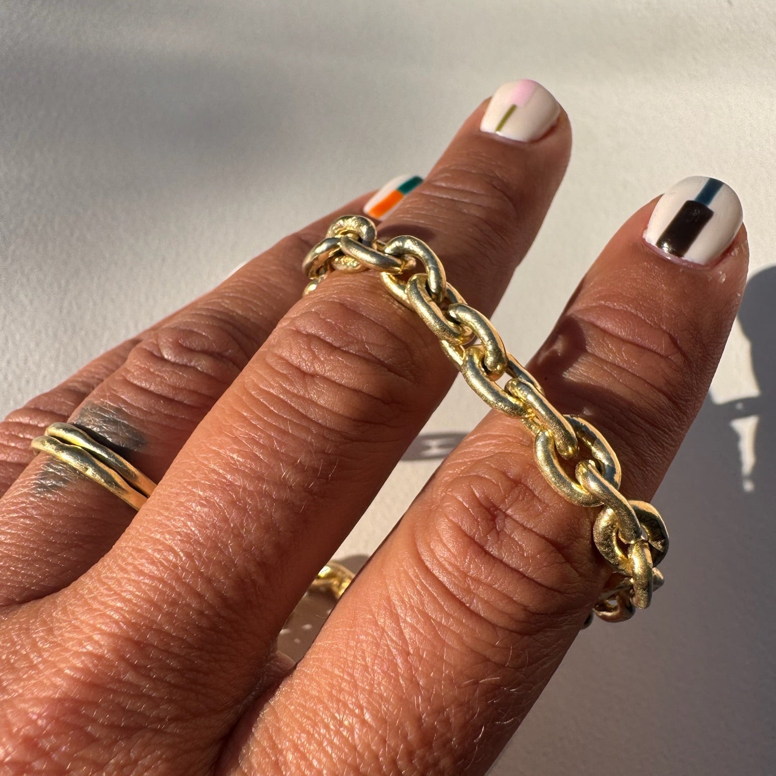 This smooth oak chain is a softer take on one of our longtime favorites. Hand-formed in solid gold, it keeps the organic texture we love—just with gentler edges and an effortless, everyday ease. It’s the kind of piece that feels natural the moment you put it on, quietly chic without trying too hard.